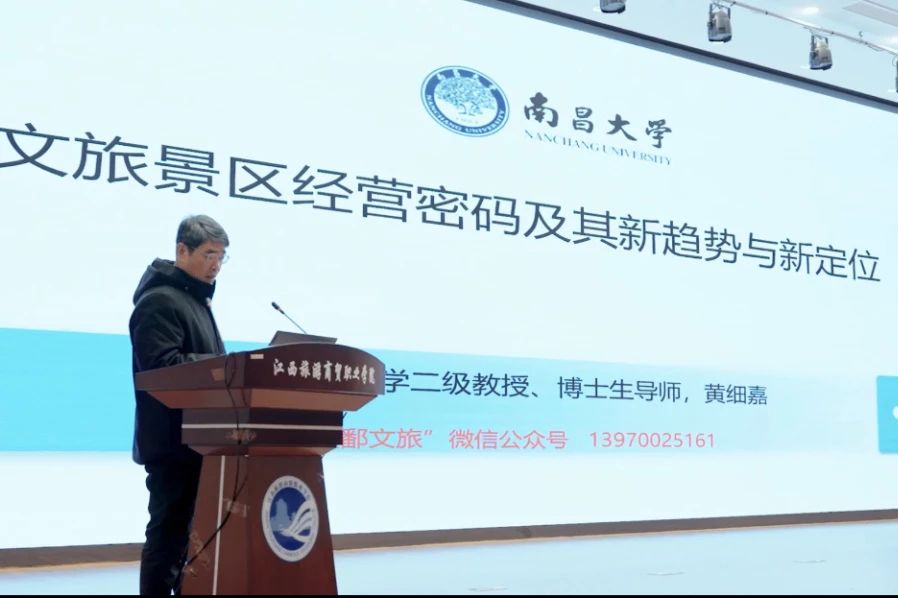 会上,王昆欣教授、黄细嘉教授分别作《旅游职业教育高质量发展的思考》《旅游目的地建设和景区经营密码及其新趋势与新定位》主旨演讲。并同步在分会场举行政校企合作洽谈会,安远县、湖口县、石城县和资溪县等县领导以及江西移动、中国工商银行等政府、企业代表参加会议。